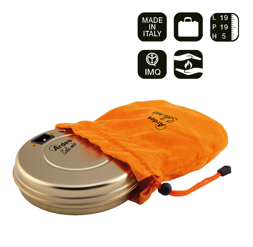 Az ARDES 071 nem csupán hatékony, hanem praktikus is. A készülékhez egy puha, összehúzható táska tartozik, amely megkönnyíti a tárolást és a hordozást. Kis méretének és könnyű súlyának köszönhetően bárhová magával viheti – legyen szó otthoni használatról, utazásról vagy akár hétvégi pihenésről. Így bárhol élvezheti az olasz minőségű melegítő nyújtotta kényelmet.