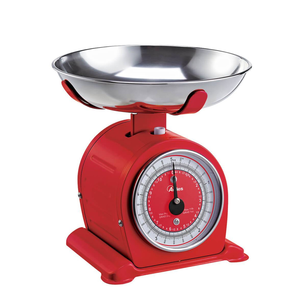 Könnyen használható mechanikus konyhai mérleg. Rozsdamentes acélból készült, kiváló minőségű levehető mérőtállal.