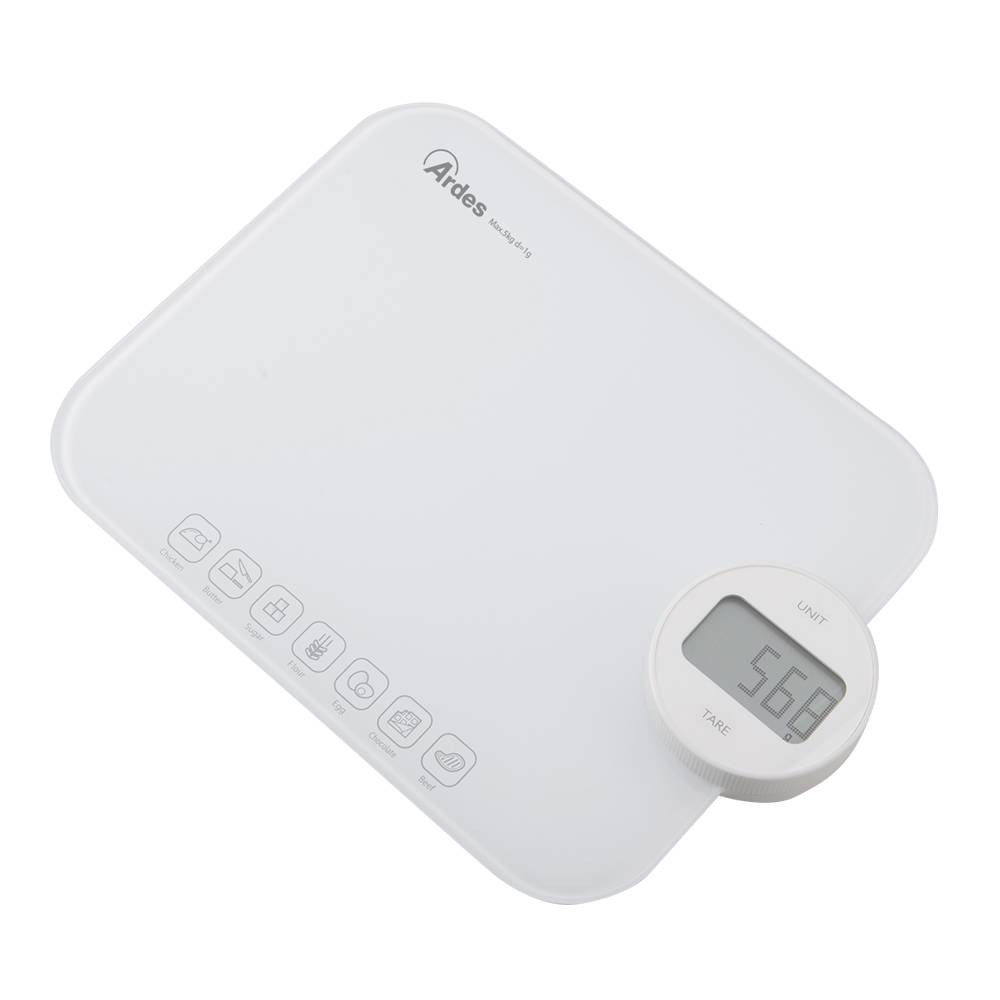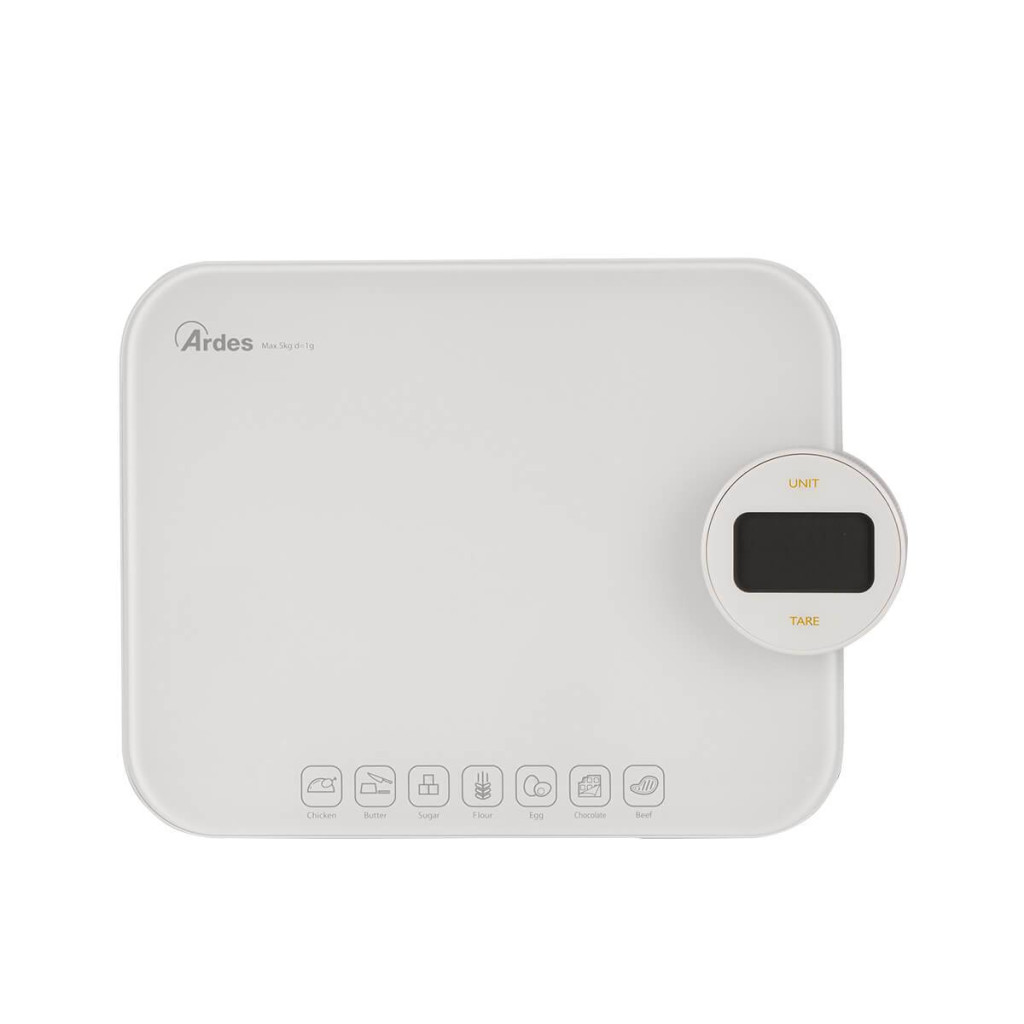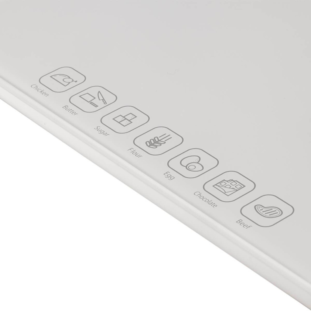 Környezetbarát, elem nélküli működtethető digitális konyhai mérleg, könnyen tisztítható, edzett üvegből készült mérő felülettel. Innovatív akkumulátor nélküli működés, manuálisan újratölthető, a kezelőgomb forgatásával. A beépített érintőgombokkal ellátott kalória-számláló lehetővé teszi a 7 leggyakrabban lemért élelmiszer kalóriájának kiszámítását és ellenőrzését: vaj, cukor, liszt, tojás, csokoládé, csirke és marhahús.