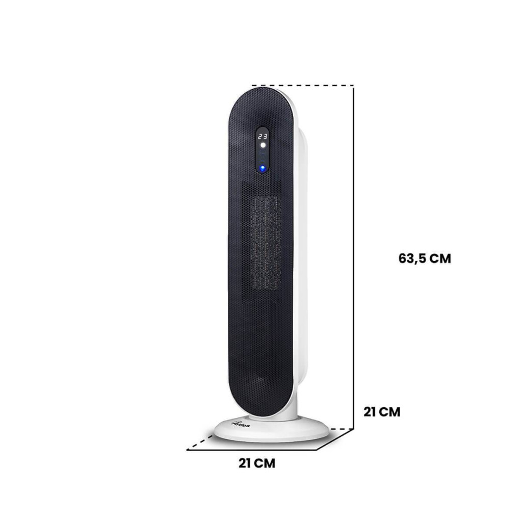 A fehér színű, 63,5 cm magas hősugárzó elegáns, modern kialakítása bármilyen enteriőrbe harmonikusan illeszkedik – akár nappaliban, hálószobában vagy dolgozószobában használja. Az érintővezérlés révén a működtetés egyszerű és kényelmes, míg a távirányító segítségével a beállításokat akár távolról is módosíthatja. A digitális LED kijelző pontosan mutatja a beállított hőmérsékletet és az aktuális üzemmódot, így a készülék használata átlátható, egyértelmű és kifejezetten felhasználóbarát.