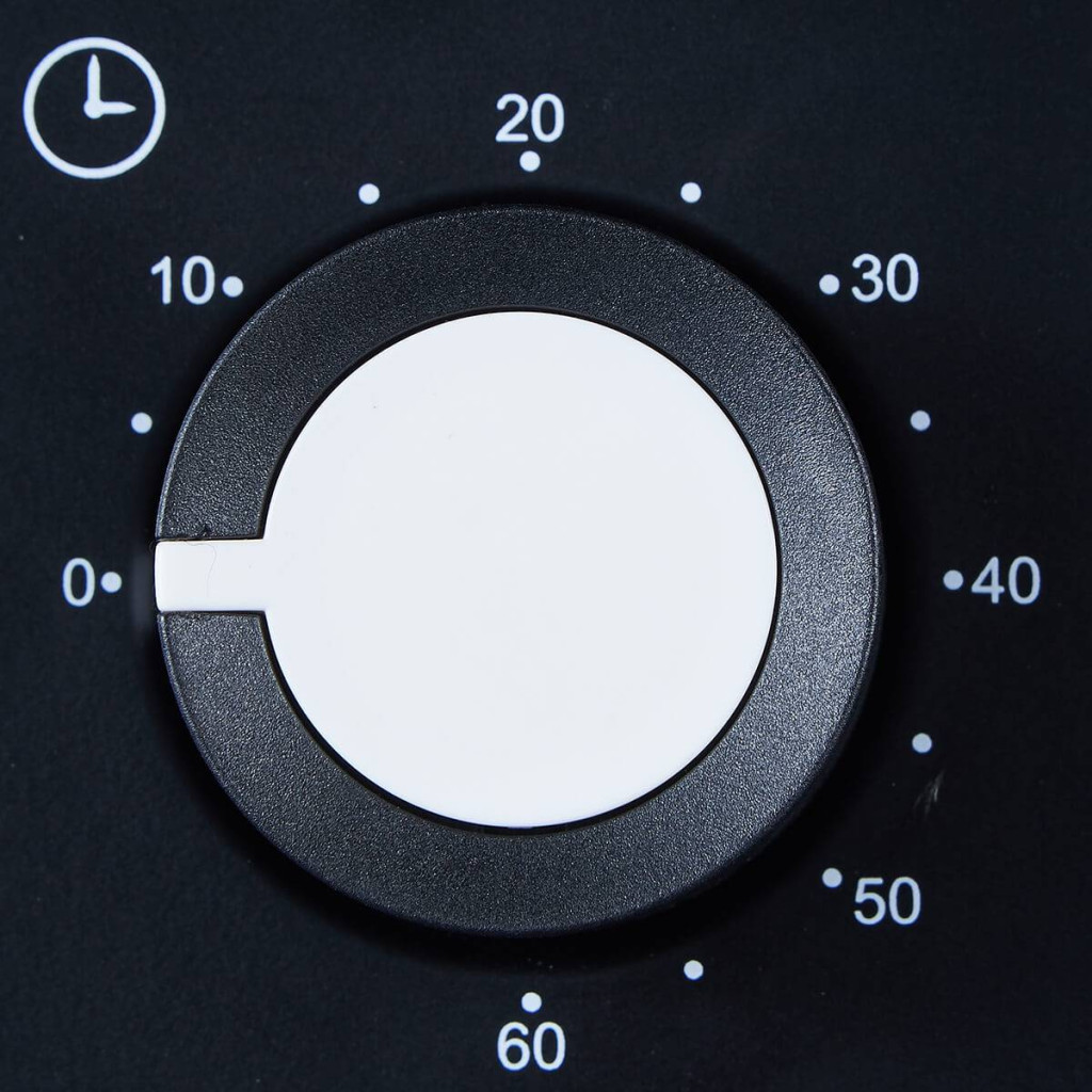 A mechanikus forgókapcsolók könnyen áttekinthetőek és egyszerűen kezelhetők, így mindennapi használatra is rendkívül praktikusak. A 100–230°C között állítható termosztát segítségével precízen szabályozható a hőfok, míg a 60 perces időzítő automatikus kikapcsolással és hangjelzéssel gondoskodik a biztonságról és a kényelmes használatról. A dupla üvegezésű ajtó jobban tartja a hőt, miközben hűvösebb marad kívül, ezzel növelve a biztonságérzetet.