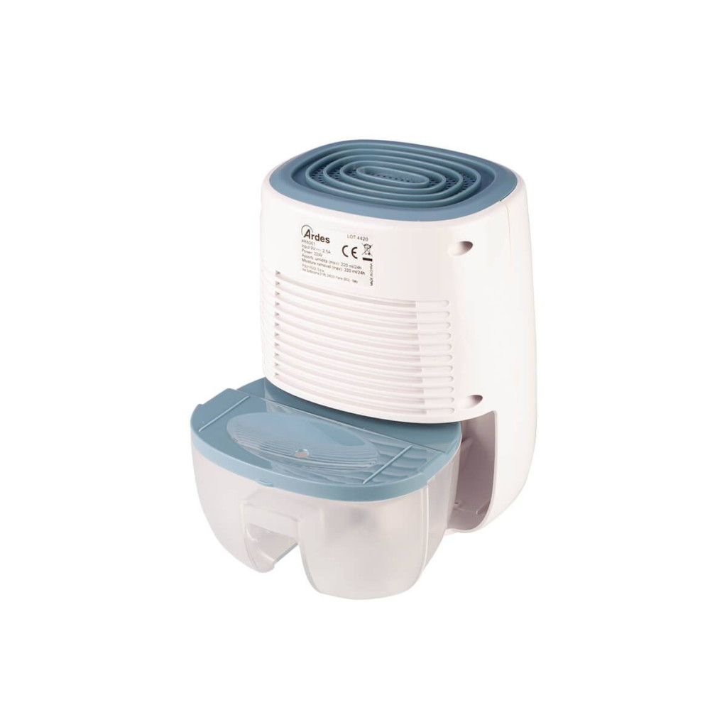 Az ARDES 8D01 páramentesítő fehér, visszafogott kivitele és mindössze 21 cm-es magassága elegáns, diszkrét megjelenést biztosít, amely bármely otthoni vagy irodai környezetbe könnyen illeszkedik. A készülék kialakítása nem tolakodó: mérete és forma lehetővé teszi, hogy polcon, fürdőszobapolcon vagy éjjeliszekrényen is elhelyezze, miközben állandó jelenlétével hozzájárul a helyiség komfortjának javításához és a penészesedés megelőzéséhez.