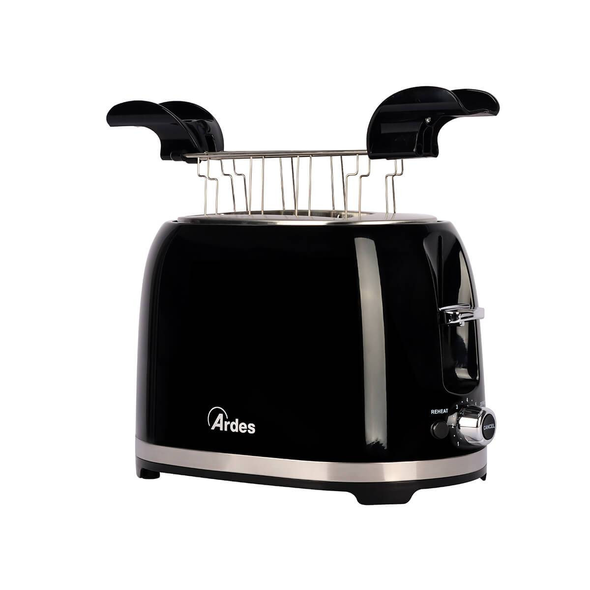 Az ARDES TOAST03 nem csupán egy kenyérpirító, hanem egy praktikus konyhai társ. Két darab rozsdamentes acél kiemelő rácsa lehetővé teszi, hogy egyszerűen, biztonságosan és egyenletesen készítsen melegszendvicseket – így a ropogós kenyér és az olvadt sajt tökéletes harmóniája könnyedén elérhető. A kiolvasztó funkció kifejezetten a fagyasztott kenyérhez készült, amely így égés nélkül, egyenletesen melegszik át, hogy rövid időn belül friss, finom pirítós kerüljön az asztalra. A már elkészült pirítósok melegítésére szolgáló funkció pedig megőrzi azok frissességét és kellemes állagát.