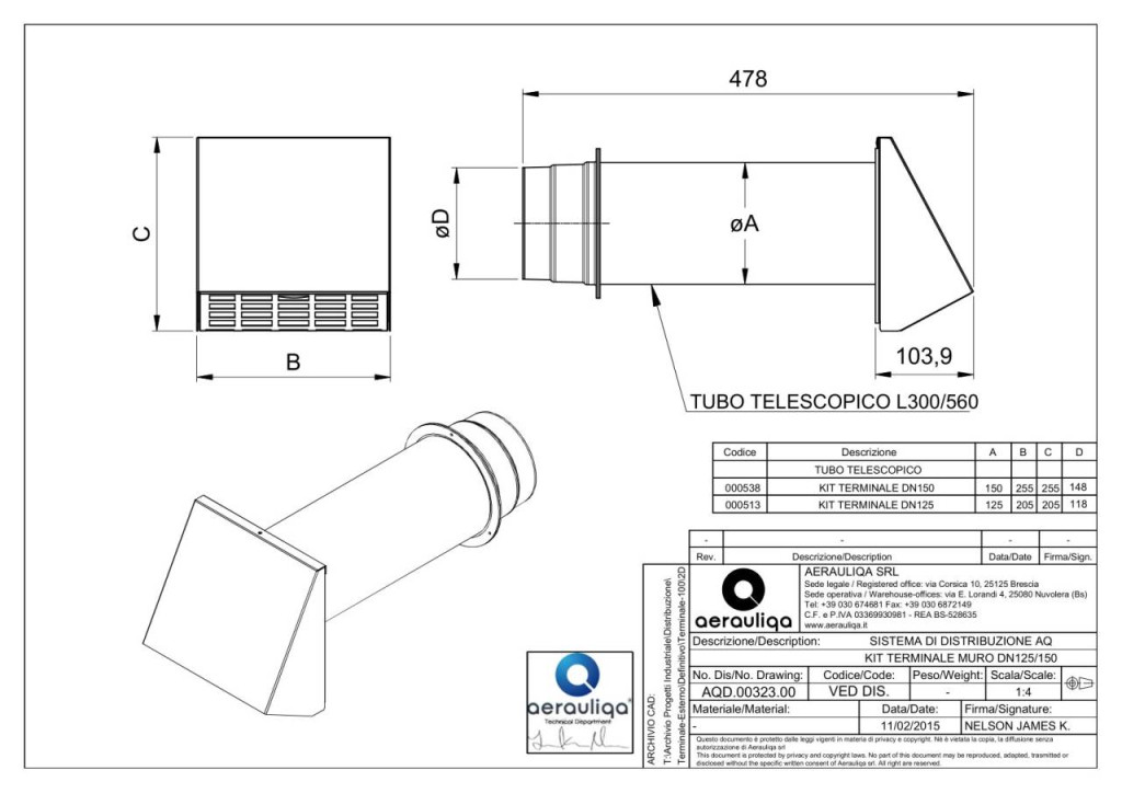 Hangcsillapított kivitelű fali ávezető szett, amely, hővisszanyerős vagy hagyományos szellőztető készülékkel szellőztetett lakások / irodák légtechnikai csőrendszerének kilépő / belépő végeleme lehet. Hosszmérete a fal vastagságának megfelelően (350-560 mm között) beállítható.