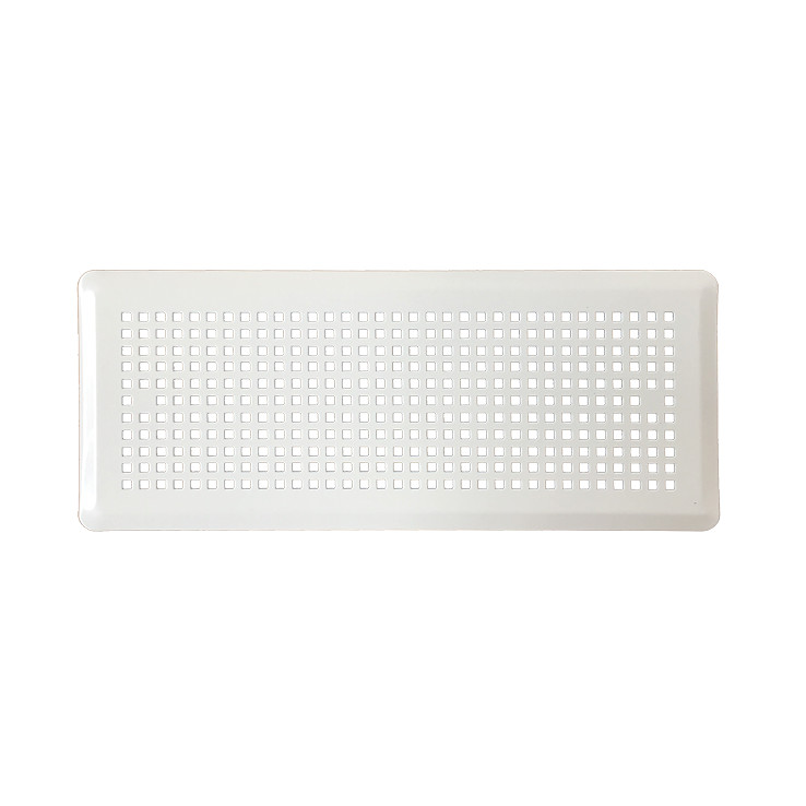 Oldalfalon elhelyezhető, perforlát (négyzet keresztmetszetű lukakat tartalmazó) védőrács mágneses csatlakozással, légelvezetésre vagy légutánpótlásra, Aerauliqa PLMLS, PLMLCS és PLMPS típusú végelemekhez.