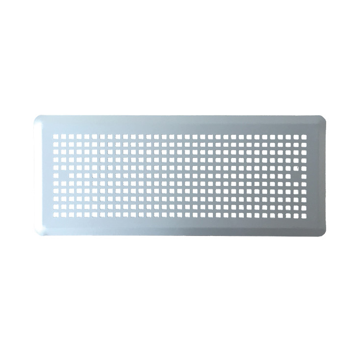 Oldalfalon elhelyezhető, perforlát (négyzet keresztmetszetű lukakat tartalmazó) védőrács mágneses csatlakozással, légelvezetésre vagy légutánpótlásra, Aerauliqa PLMLS, PLMLCS és PLMPS típusú végelemekhez.