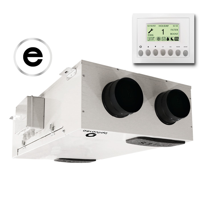 "E" változat: Entalpia rendszerű hőcserélővel, automata bypass funkcióval (hőcsere nélküli szellőztetés lehetősége, szükség esetén), a készülékhez mellékelt Aerauliqa CTRL-DISP multifunkcionális szabályzó egységgel. Az entalpia rendszerű hőcserélővel rendelkező hővisszanyerős szellőztető készülék alkalmazásával a legmagasabb energiahatékonyságú szellőztetés a páratartalom csökkenése nélkül valósítható meg, ezért telepítése alacsony páratartalmú épületekben javasolt. Ilyen esetben az emberi egészségre / komfortérzetre fokozottan kedvező hatása miatt is célszerű választani az entalpia rendszerű készülékeket, amelyekkel megelőzhetők bizonyos, a száraz levegő okozta egészségügyi problémák, mint pl. a szemszárazság, torokkaparás.