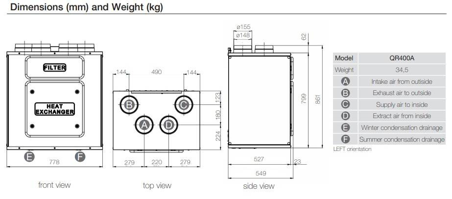 - beépített fizikai bypass (hőcsere nélküli szellőztetés lehetősége, szükség esetén);