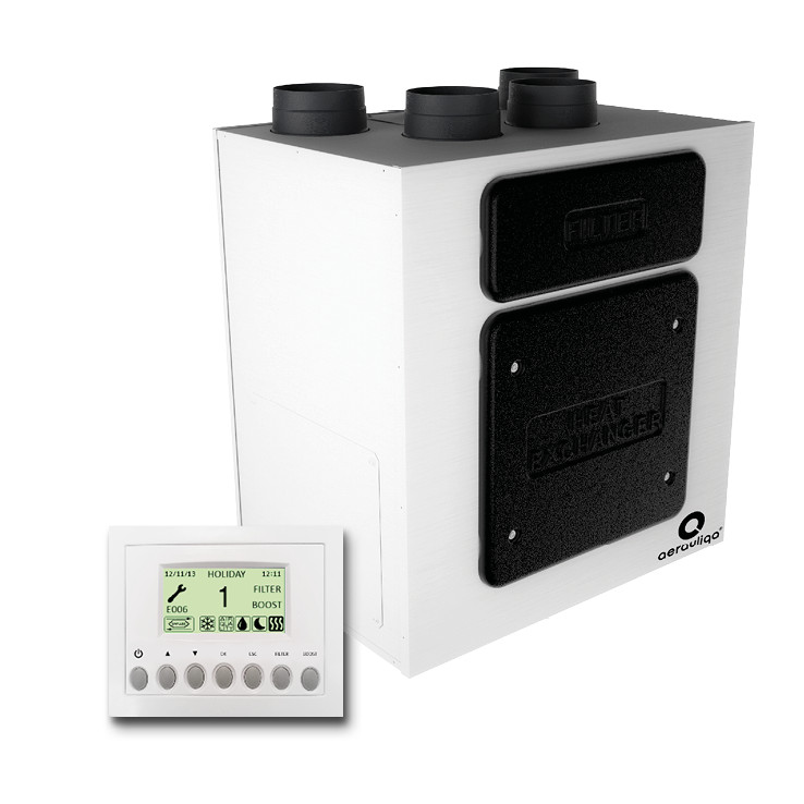 "A" változat: automata bypass funkcióval (hőcsere nélküli szellőztetés lehetősége, szükség esetén), a készülékhez mellékelt magyar nyelvű Aerauliqa CTRL-DISP multifunkcionális szabályzó egységgel.