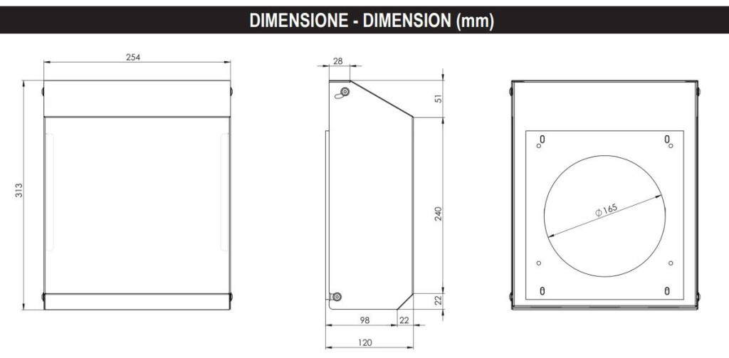 - Telepíthetőség: kültéren elhelyezhető, oldalfalra szerelhető - maximum 165 mm-es átmérőjű légtechnikai csőkivezetéshez illeszthető.