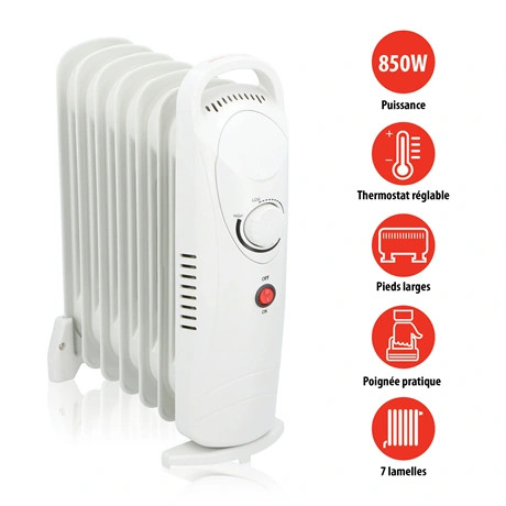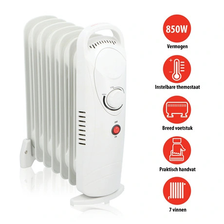- 7 tagú radiátor: olajjal töltött, egyenletes hőeloszlás.
