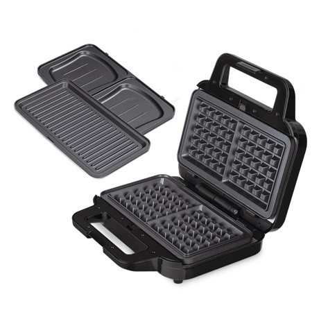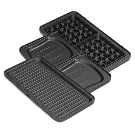 • 3 féle levehető XL méretű lap a különféle ételek elkészítéséhez: grill, szendvics, gofri