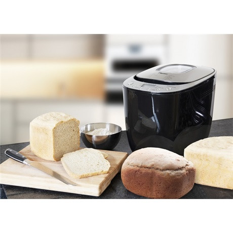 KENYÉRSÜTŐ - 12 program - kb. 900 g súlyú cipó - nagy LCD kijelző világos háttérrel - 13 órás digitális időzítő a késleltetett program mentéshez - tapadásmentes serpenyő - állítható kenyérhéj szabályozás - 1 órás, automata melegen tartás - levehető fedél ablakkal - 10 perces mentés áramkimaradás esetén - 550W teljesítmény - Fekete kivitel