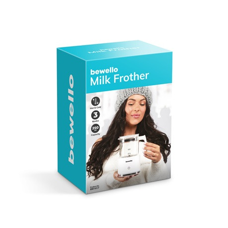 Amennyiben meleg tejhabot szeretne, öntsön friss tejet a tartályba, nyomja meg egyszer a gombot, hogy elindítsa a készüléket. Rövid időn belül habos és selymes meleg tejhabot kap, amellyel varázslatos latte-kat, kávékat és forró csokoládékat készíthet otthonában, vendégei és saját maga részére is. A könnyen tisztítható habosítófej hozzájárul a kiváló minőségű tejhab előállításához. A tartály nagy űrtartalommal és tapadásmentes felülettel rendelkezik, így a használat és a tisztítás is egyszerű. A készülék csendes működése pedig nem zavarja meg a ház nyugalmát, így élvezheti a csendes reggeleket vagy este a pihentető pillanatokat. Az otthoni kávézás szerelmeseinek elengedhetetlen kellék a Bewello termékcsalád legújabb tejhabosítója!