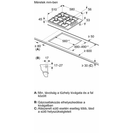 - Beépítési méretigény (ma x szé x mé): 45 x 560-562 x 480-492 mm