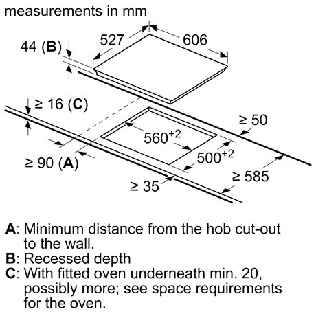 - Beépítési méretek: (Vastagság/Szélesség/Mélység) 44 mm x 560 mm x 500 mm