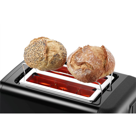 • Fokozatmentes pirítási erősség-szabályozó gomb, integrált melegítőráccsal