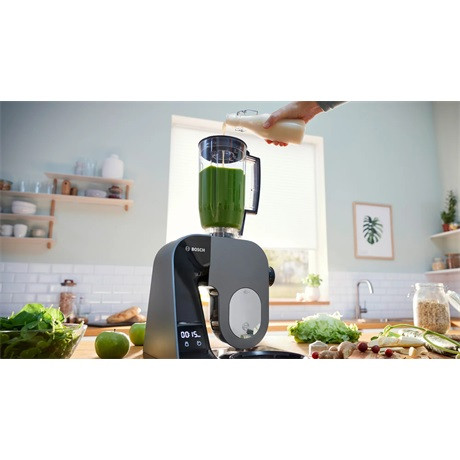Miért használjunk több eszközt, ha egy is elegendő? A beépített mérlegnek köszönhetően a receptben szereplő összetevőket közvetlenül a tálban vagy a többi tartozékban (turmixfeltét, szeletelőfeltét) mérheti le. Ez praktikus és időtakarékos, mivel így kevesebb mosogatnivaló keletkezik.