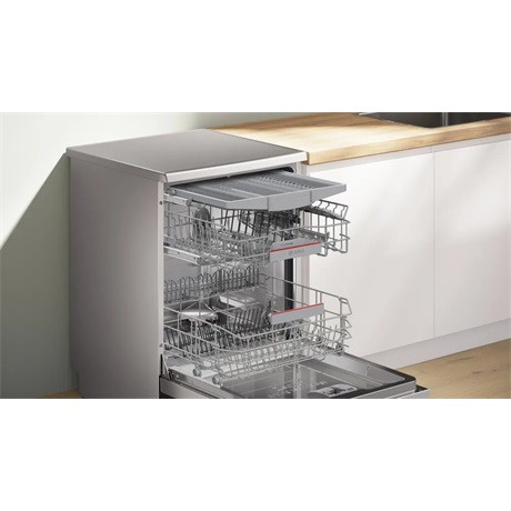 Előfordul, hogy nem fér be minden a mosogatógépbe, mivel annak kialakítása nem módosítható. A VarioDrawer egy plusz szint a Bosch mosogatógépekhez, amely megoldja ezt a problémát. Ideális az evőeszközökhöz és a kisebb konyhai eszközökhöz (például merőkanálhoz vagy habverőhöz), de a kávéscsészékhez is kiváló. Nagyobb rugalmasságot biztosít a mosogatógép megtöltésekor, és az alsó kosárban is több hely marad. A VarioDrawer evőeszköztartó kosárral a 60 cm-es mosogatógépeknél akár 14 terítéknek, a 45 cm-es mosogatógépeknél pedig 10 terítéknek szabadítható fel hely. Az eredmény: a mosogatógép rugalmasabban és kényelmesebben megtölthető.