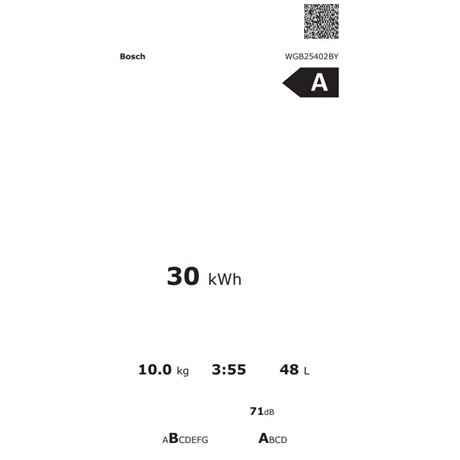 Energiatakarékos háztartási készülékek használatával értékes erőforrásokat takaríthat meg. Háztartási készülékek vásárlásakor ezért érdemes alacsony energia- és vízfogyasztású készüléket választani. Az energiafogyasztási címke jelzi az adott készülék energiaosztályát (A-tól G-ig), zajszintjét, teljesítményét, valamint energia- és vízfogyasztását. Hatékony energiatakarékossági rendszerünknek köszönhetően Bosch mosógépeink minden mosás során megfelelnek a legjobb, A energiaosztály követelményeinek, a mosási eredmény pedig minden alkalommal garantáltan tökéletes.