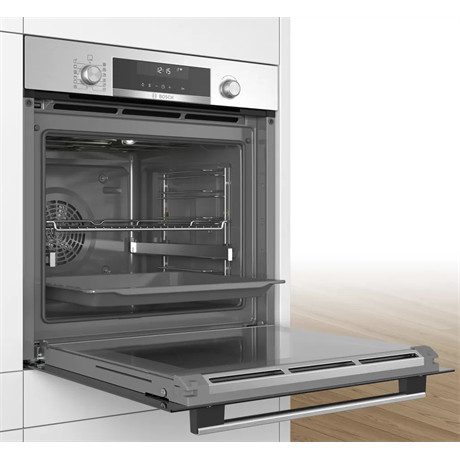 Önállóan beépíthető sütő - Serie6 - HomeConnect - nemesacél - 71 l sütőtér - 9 funkció - 3D hőlégbefúvás - Energiaosztály: A - pirolitikus öntisztítás - AutoPilot30 - maghőmérő - 1-szintű szintfüggetlen teleszkópos sütősín - LCD kijelző érintőgombokkal - Elektronikus óra - Gyerekzár - Gyorsfelfűtés - Süllyeszthető gombok