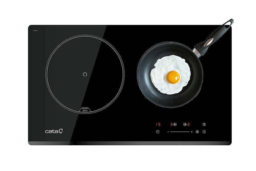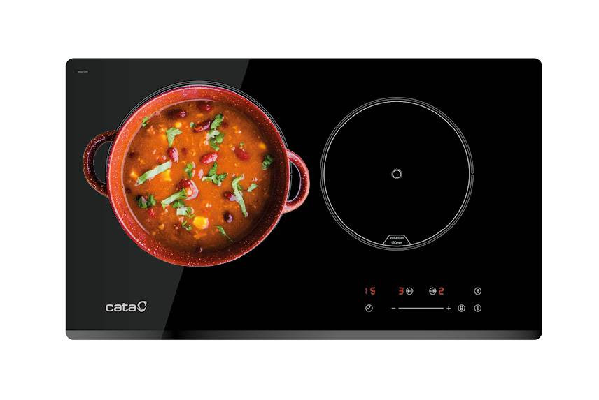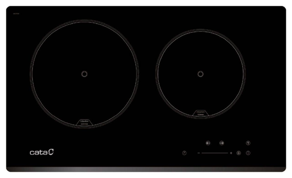 2 Indukciós főzőzóna, Touch Control érintővezérlés, 1 db 220 mm-es BOOSTER funkcióval, 1 db 180 mm-es főzőzóna, 9 fokozat, időzítő, gyerekzár, automata kikapcsolás, maradékhő kijelzés, teljesítmény: 3,7 kW, Quick-Fix System