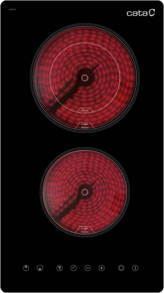 2 High Light főzőzóna, Touch Control vezérlés, 1 db 155 mm-es (1200 W), 1 db kétkörös bővíthető zónás 190/120 mm-es (1800/900 W) főzőzóna, 9 fokozat, gyerekzár, maradékhő visszajelzés, teljesítmény: 3,2 kW