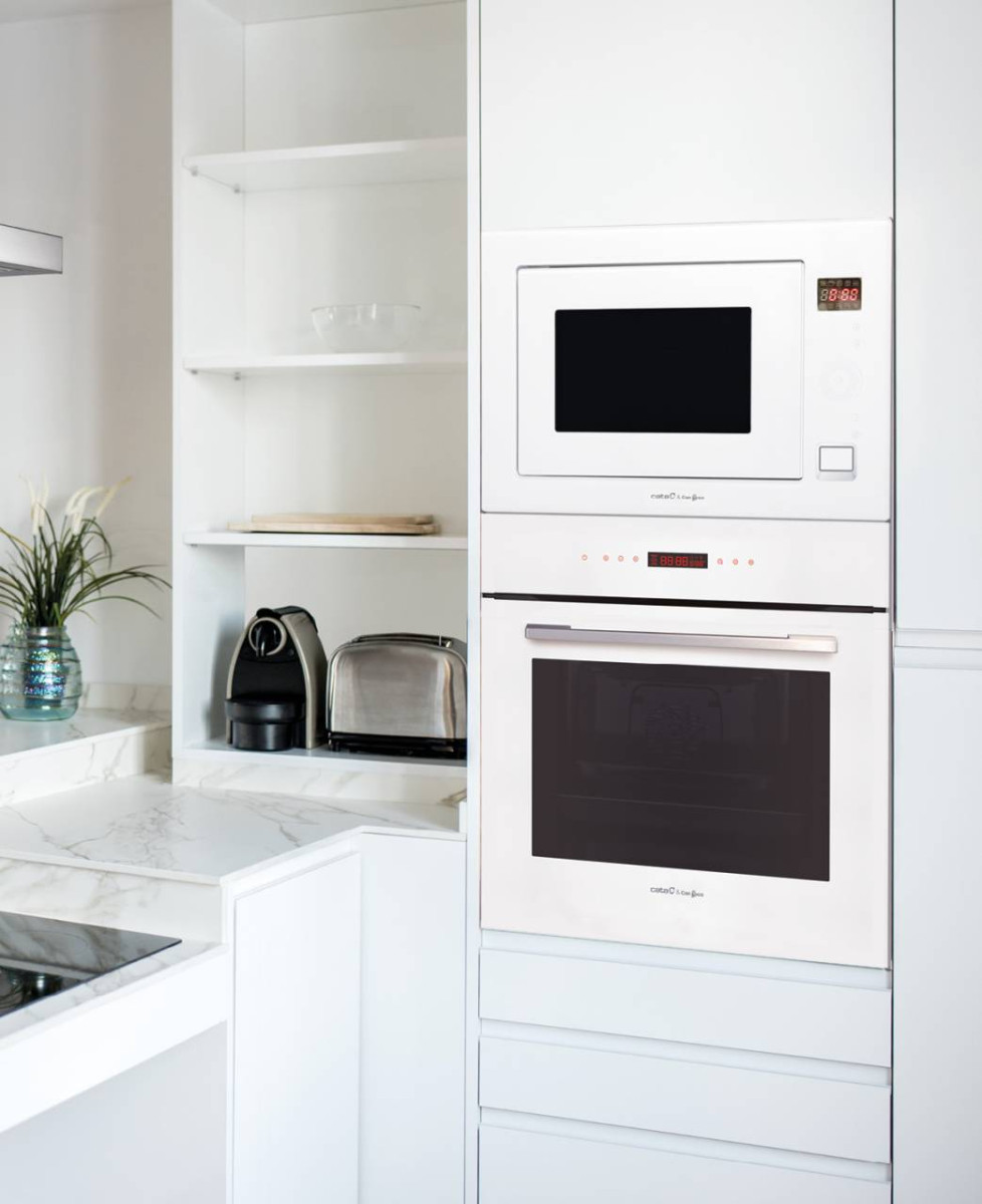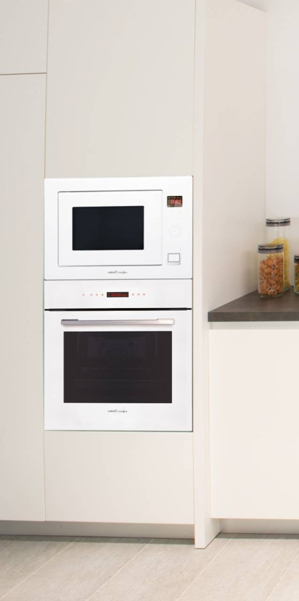 25 literes űrtartalom, 900 W teljesítmény, 1000 W kvarc grill teljesítmény, digitális programozás és időzítő, touch control érontővezérlés, 9 program, automata kiolvasztás, automata programok, súlyautomatika, gyerekzár, inox belső tér, fehér üveg előlap és keret