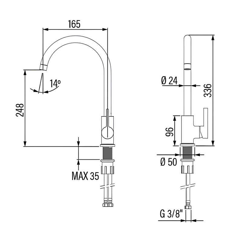 A jobb oldalon elhelyezett karos vezérlés intuitív és ergonomikus használatot biztosít. A kar könnyedén szabályozza a víz hőmérsékletét és erősségét, lehetővé téve a precíz beállítást. A klasszikus egykaros kialakítás ideálisan ötvözi az egyszerűséget és a funkcionalitást.