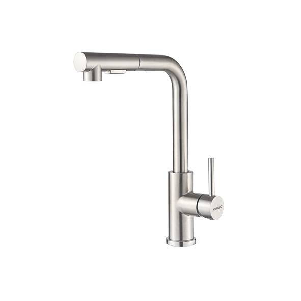 Egykaros kerámiabetétes csaptelep, flexibilis zuhanyfejjel, forgatható kifolyócsővel és oldalsó szabályzóval.