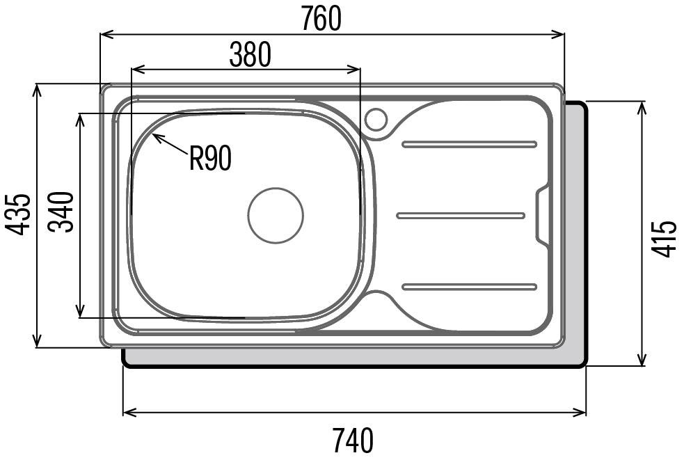 Az egymedencés kialakítás mellé praktikus csepegtetőfelület társul, így a mosogatás minden mozzanata kényelmesen és rendezetten végezhető. A bal oldalon elhelyezett medence 150 mm-es mélysége ideálissá teszi a nagyobb edények, serpenyők tisztításához is. A 760x435 mm-es teljes tálcaméret elegendő helyet biztosít a mindennapi használathoz, miközben helytakarékos megoldás marad a kisebb konyhákban is. A finoman ívelt, R90-es sarokkialakítás megkönnyíti a vízelvezetést, és egyszerűsíti a tisztítást.