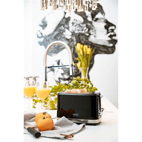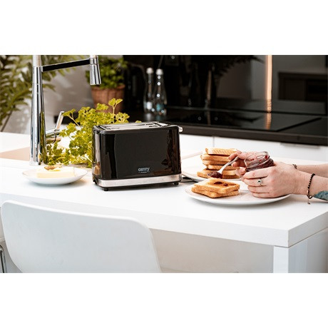 Hatékony 900 W-os kenyérpirító, amelyben egyszerre két pirítós készíthető. A barnulást beállító gomb lehetővé teszi a pirítósok elkészítését úgy, ahogyan a legjobban szereti. Ennek köszönhetően pontosan olyan ropogósak, amilyennek lennie kell. A morzsatálca segít tisztán tartani a készüléket, valamint az ételkészítés helyét. Amikor a kenyérpirító a házán van, hűvös marad – ez az egyik olyan tényező, amely növeli a készülék működésének biztonságát. A barnulási folyamat a STOP gombbal leállítható. A kenyérpirítónak van egy bónusz funkciója is, amely növeli a használhatóságát - egy grill a zsemlét felmelegítésére.