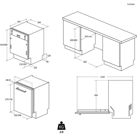 - Min. beépítési szélesség: 600 mm