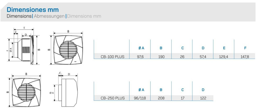 A Cata CB-Plus szellőztető ventilátorok hagyományos kialakítású rácsos előlappal rendelkeznek.
