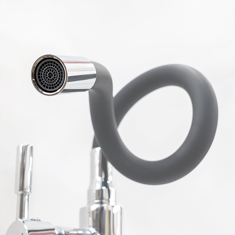 A szilikon bevonatú flexibilis cső lehetővé teszi, hogy a kifolyó formáját és magasságát szabadon alakítsd.