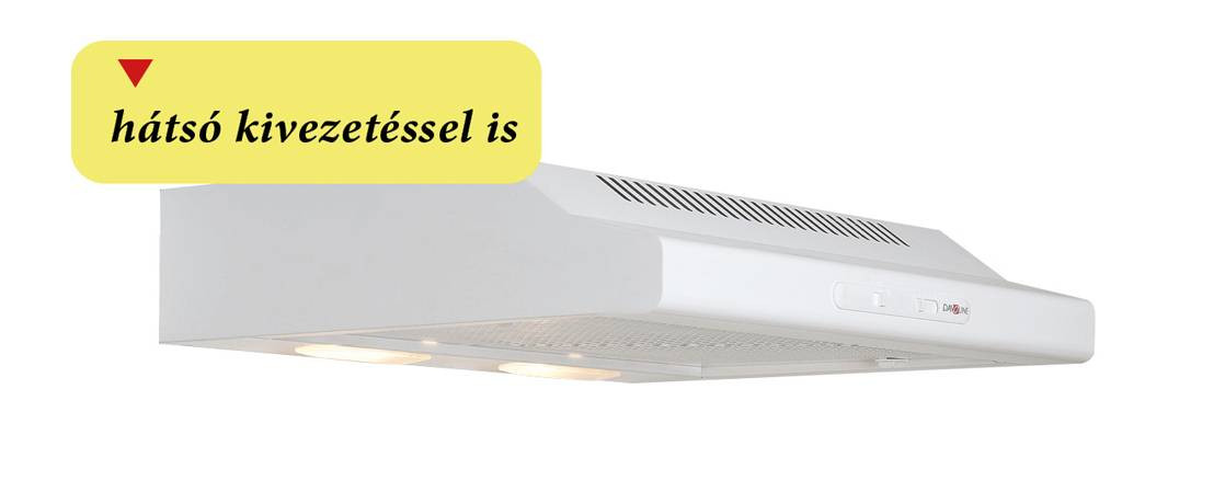 Ez a hagyományos páraelszívó önállóan falra szerelhető, vagy szekrény aljára rögzíthető, 3 sebesség fokozattal rendelkezik.