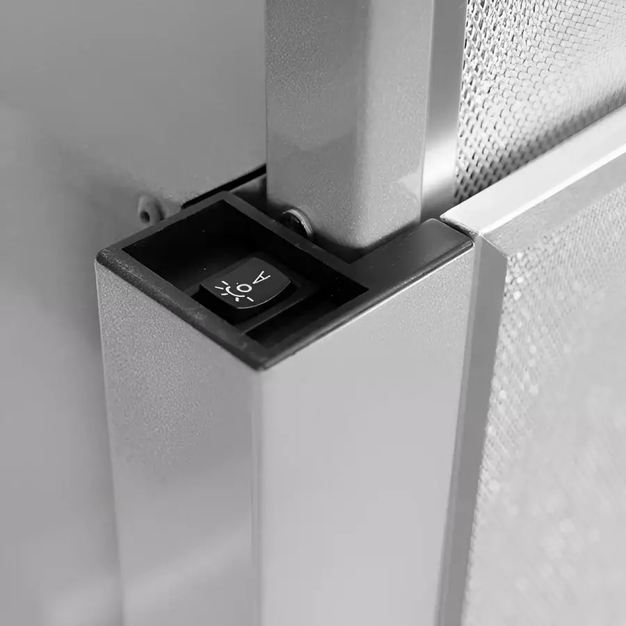 A páraelszívó egyszerűen kezelhető, három fokozatú mechanikus billenőkapcsolóval rendelkezik, amely lehetővé teszi a szívóerő manuális szabályozását az aktuális főzési igényeknek megfelelően. Az alacsonyabb fokozat ideális a kisebb pára vagy szag esetén, míg a magasabb fokozat intenzívebb szellőzést biztosít a gyorsabb levegőtisztítás érdekében.