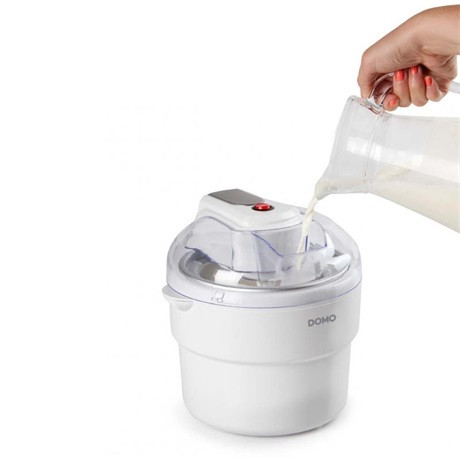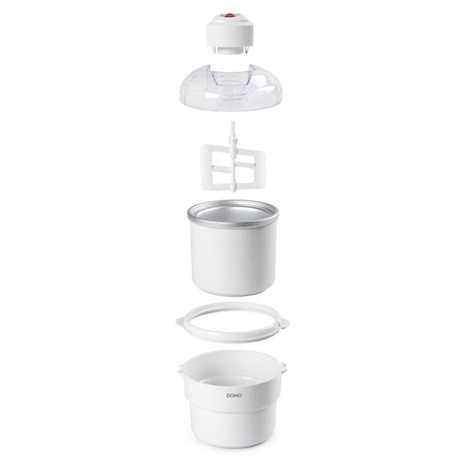 A DOMO fagylaltkészítő géppel akár 1 liter fagylaltot készíthet. A fagylaltkészítő átlátszó fedéllel, adagolócsővel és kivehető fagyasztótállal rendelkezik. Nagyon könnyen használható: az előre a fagyasztóban előhűtött keverőtálba helyezze a lehűtött hozzávalókat és a készülék egy gombnyomásra elindul. A készülék nagyon egyszerűen szétszedhető és könnyen tisztítható.
