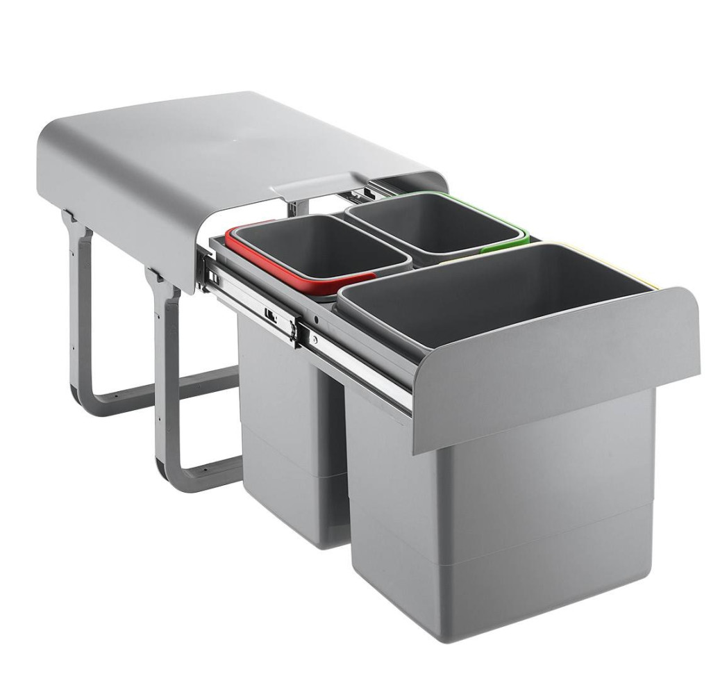 Szekrénybe szerelhető, kihúzható rendszer, szelektív hulladékgyűjtéshez.
