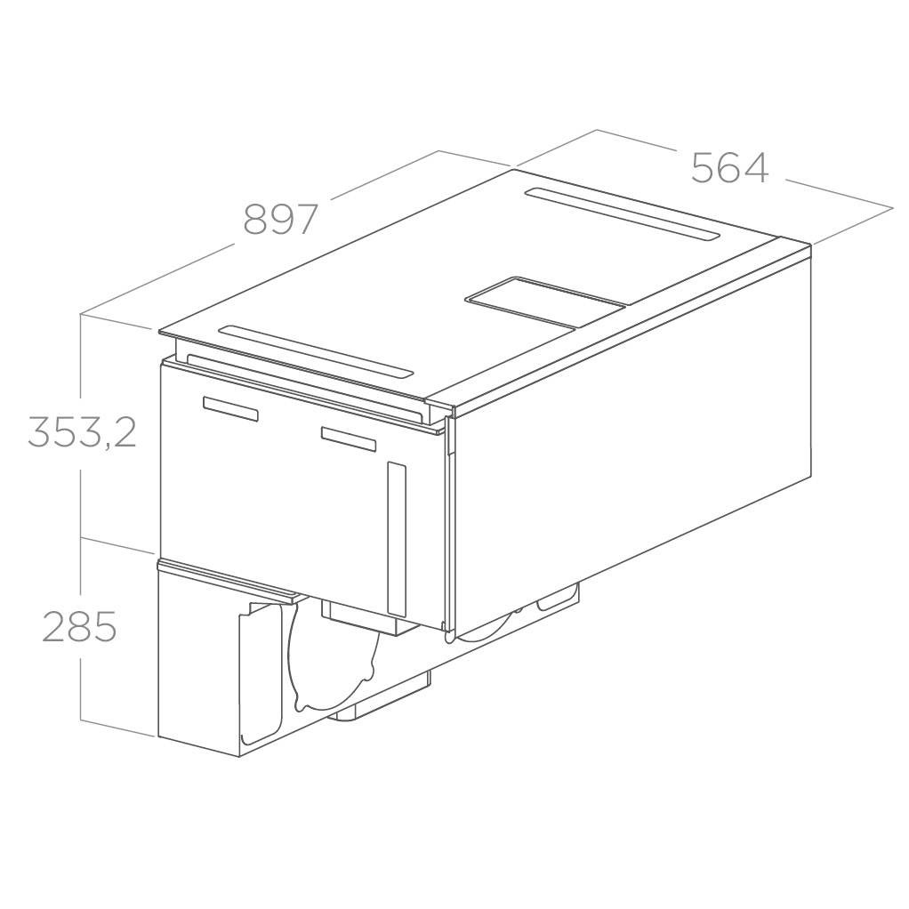 Ez a készlet lehetővé teszi, hogy a készüléket szűrős (belső keringtetéses) üzemmódban telepítse, és a megtisztított levegőt lefelé történő kifújással a bútorba vezesse. A konyhabútor megfelelő szellőzését a készlethez tartozó, a lábazatba szerelhető kromózott ráccsal lehet biztosítani.