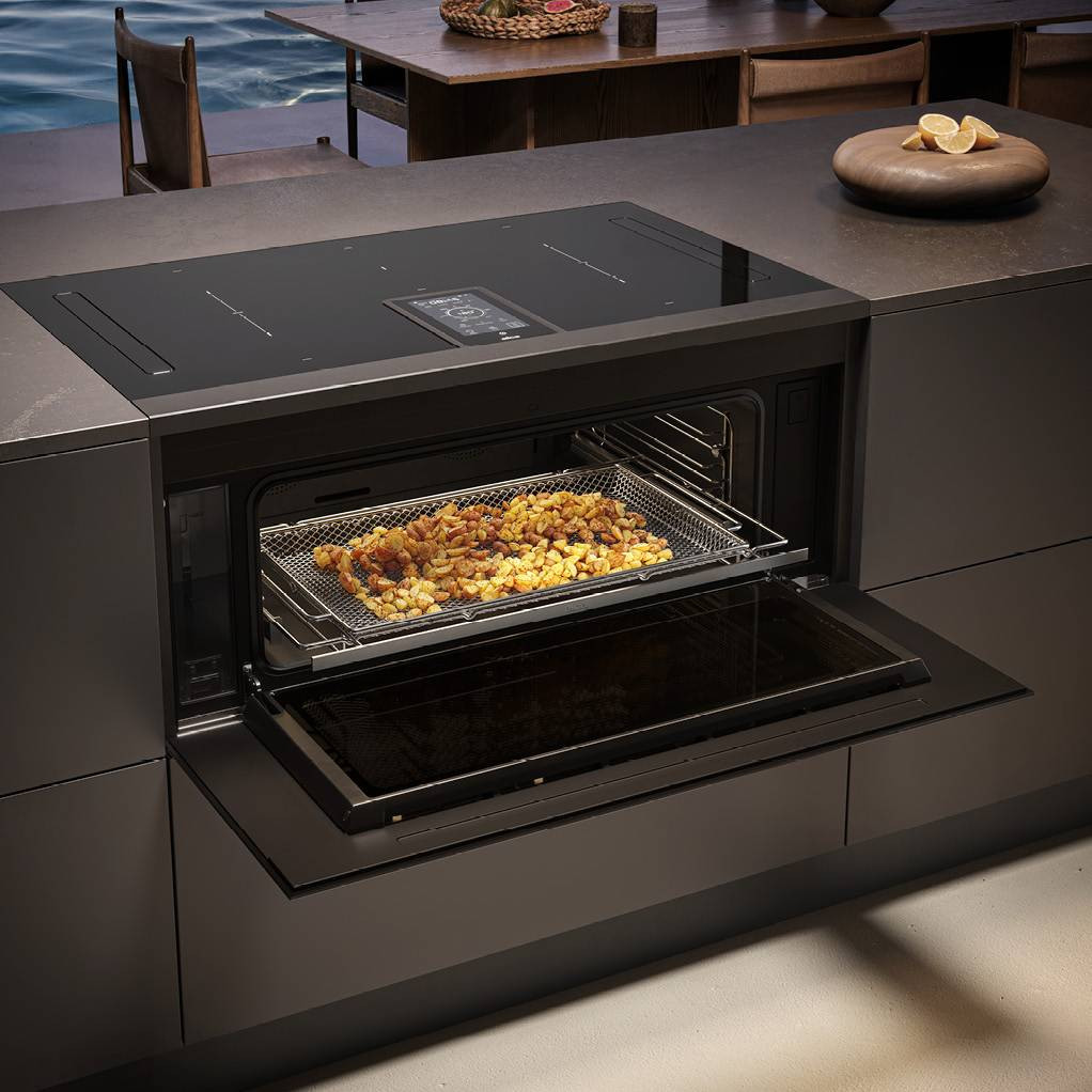 A Lhov az első All-in-One készülék a piacon, és innovációi magukért beszélnek. Fekete üveggel történt szuper lineáris kialakítása a páratlan esztétikát és teljesítményt ötvözi: tökéletesen illeszkedik a konyhabútorokhoz, innovatív funkciókat, különböző főzési módokat és területeket, lenyűgöző érintőképernyőt kínál, hogy minden igényt kielégítsen. Végül, de nem utolsósorban: legújabb generációs elszívórendszere képes felfogni a gőzöket és a szagokat a főzőlapról, és most először : a sütőből is.