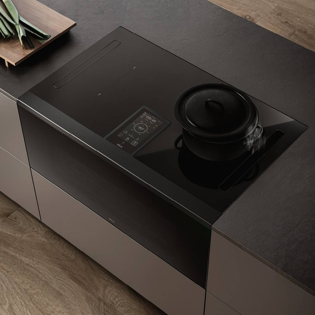 Elszív, pont ott és pont úgy ahol és ahogy kell, automatikusan. A rendszer felismeri az aktív főzőzónákat, és az elszívást a megfelelő szintre állítja be, csak azon az oldalon, ahol szükség van rá. Nagyszerű megtakarítás, amely a főzés végéig hatékony, a szívóteljesítmény fokozatosan csökkenésével, hogy a maradék pára eltávozhasson.