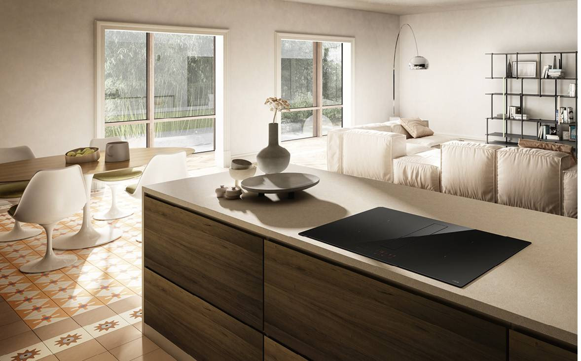 A matt fekete üveg az esztétikai koncepciója ennek az hatékony és sokoldalú, 80 cm-es alaplaphoz is alkalmas páraelszívóval integrált lapnak. Az ujjlenyomatmentes felület ellenáll a karcolásoknak és a kopásnak, ami nagyban leegyszerűsíti az összes tisztítási műveletet. Egy egyszerű érintéssel aktiválható, és a dupla hídzóna kibővíti a főzési lehetőségeket, lehetővé téve még a legnagyobb edények használatát is. Amikor a a páraelszívó zárva van, a konyhalap teljesen lineáris, ami igen esztétikus hatást kelt. Az integrált elszívórendszer egy mozdulatra eltünteti a szagokat, füstöt és gőzöket. A hosszú élettartamú szagszűrők könnyen kivehetők, és egy speciális szelep lehetővé teszi a kiömlött folyadékok leeresztését a teljes higiénia érdekében.