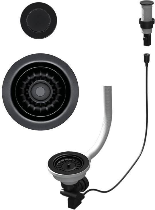 PUSH-CONTROL POP UP automata dugókiemelő, tulfolyó nélkül, fekete színben 1 medencés mosogatóhoz.