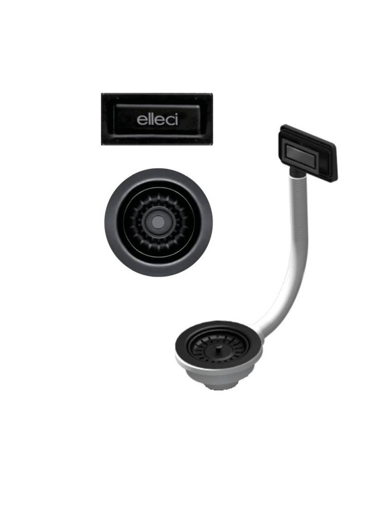 ELLECI leeresztő és túlfolyó készlet mosogatótálcákhoz fekete színben.