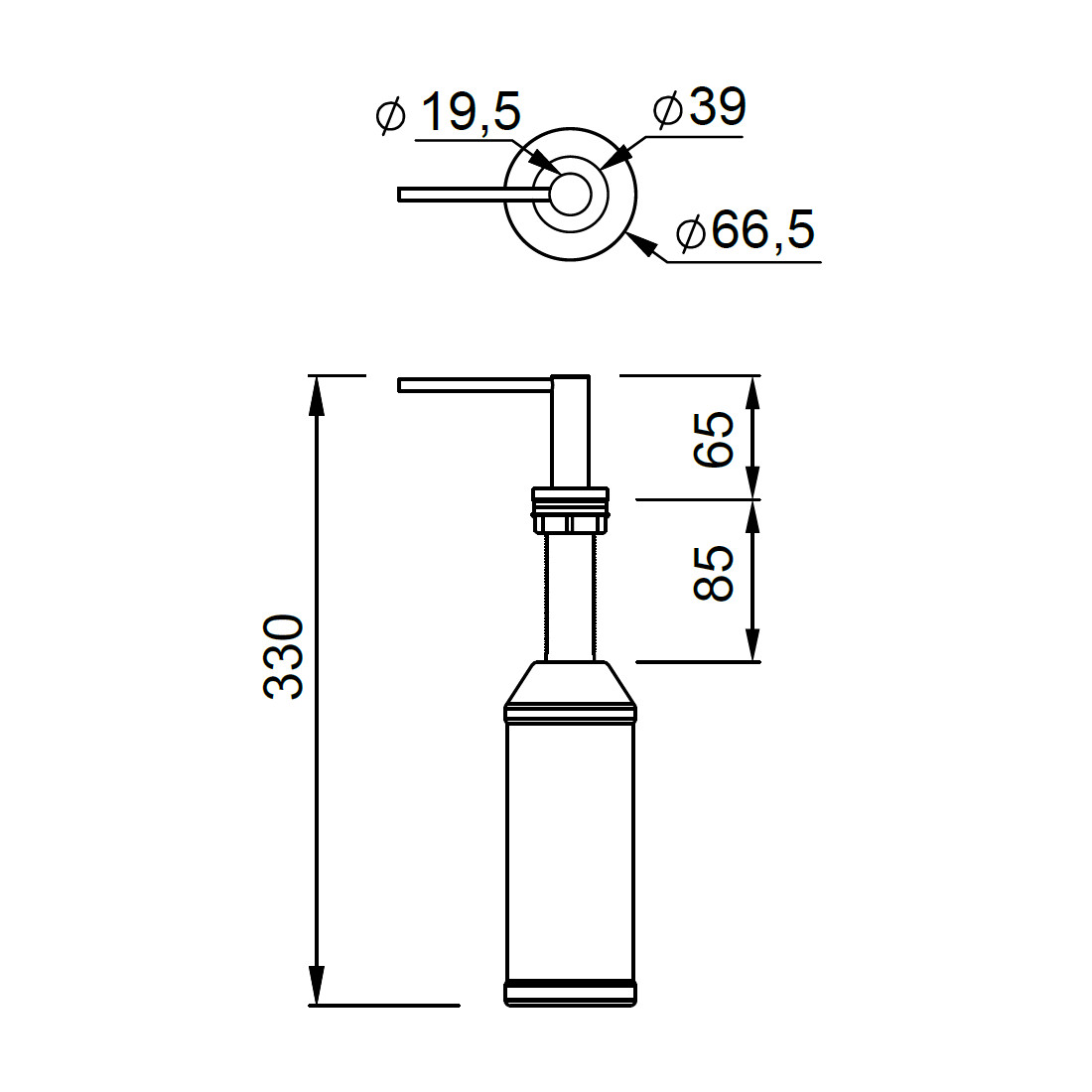 A 330 mm magas, 66,5 mm átmérőjű adagoló olyan arányokkal rendelkezik, amelyek kényelmes használatot biztosítanak, miközben harmonikusan illeszkedik a munkafelülethez. A 250 ml űrtartalom lehetővé teszi, hogy ritkábban kelljen utántölteni, ezzel is megkönnyítve a mindennapi konyhai teendőket. A termék beépítéséhez szükséges 35 mm-es kivágás (körátmérő) egyszerű telepítést tesz lehetővé, különösebb szakértelmet nem igényel.