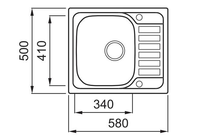 unkalapra szerelhető 18/10 rozsdamentes anyagból készült inox mosogatótálca, csaptelep számára előfúrt lyukkal, szűrőkosár, helytakarékos szifon, lefogató körmök és tömítőszalag