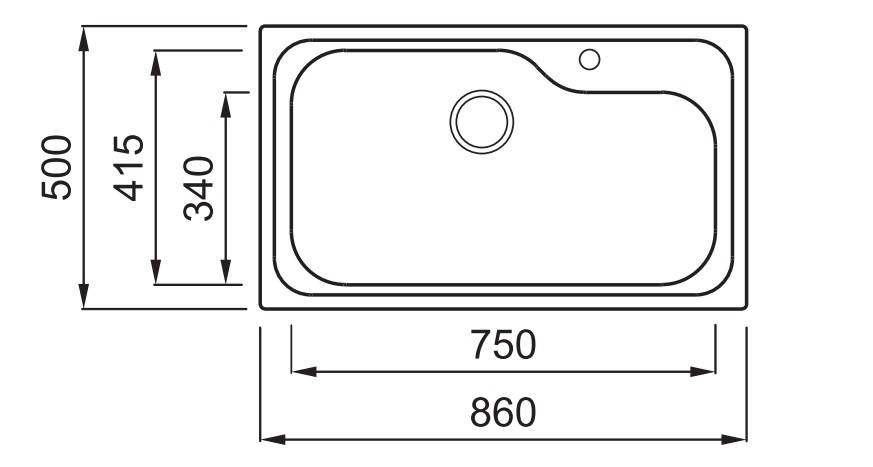 Munkalapra szerelhető 18/10 rozsdamentes anyagból készült inox mosogatótálca, csaptelep számára előfúrt lyukkal, szűrőkosár, helytakarékos szifon, lefogató körmök és tömítőszalag.