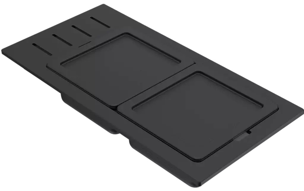 A modell különlegessége a szélesebb keret, amely extra tárolási és előkészítési felületet biztosít, így még nagyobb szabadságot ad a konyhai munkavégzésben. A letisztult fekete megjelenés modern eleganciát sugároz, és tökéletesen illeszkedik az Elleci SINTESI mosogatórendszerekhez, biztosítva a precíz és stabil elhelyezést.
