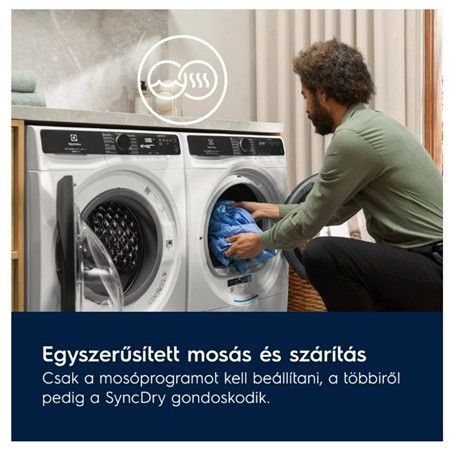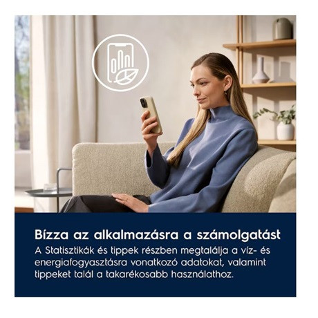 Párosítsa készülékét az Electrolux alkalmazással, hogy azon keresztül is irányíthassa. Emellett látni fogja a valós idejű állapotfrissítéseket, valamint tippeket kap mosási szokásai alapján az energia- és víztakarékosabb használathoz. Csatlakoztassa párban mosógépét és szárítógépét is, és takarítson meg időt az összehangolt mosó- és szárítóprogramokkal a Connected+ funkciónak köszönhetően.
